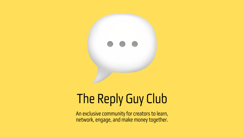 The Reply Guy Club is an exclusive community for individuals who are looking to grow an audience on social media, create valuable content, and make money online.